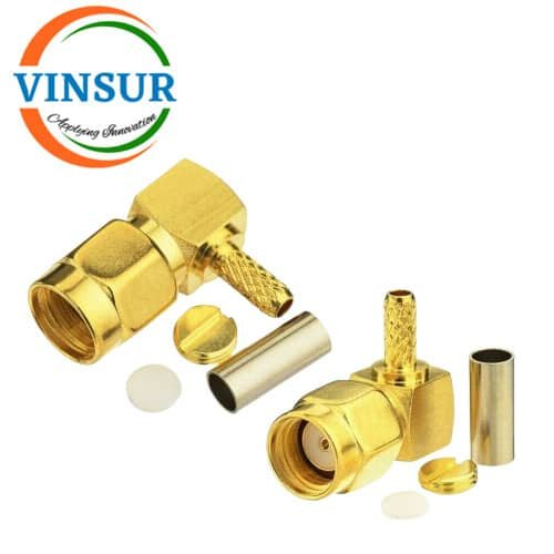 41410922 — RF ADAPTER – 50 OHMS, SMA MALE TO RP SMA FEMALE RIGHT ANGLE ADAPTER
